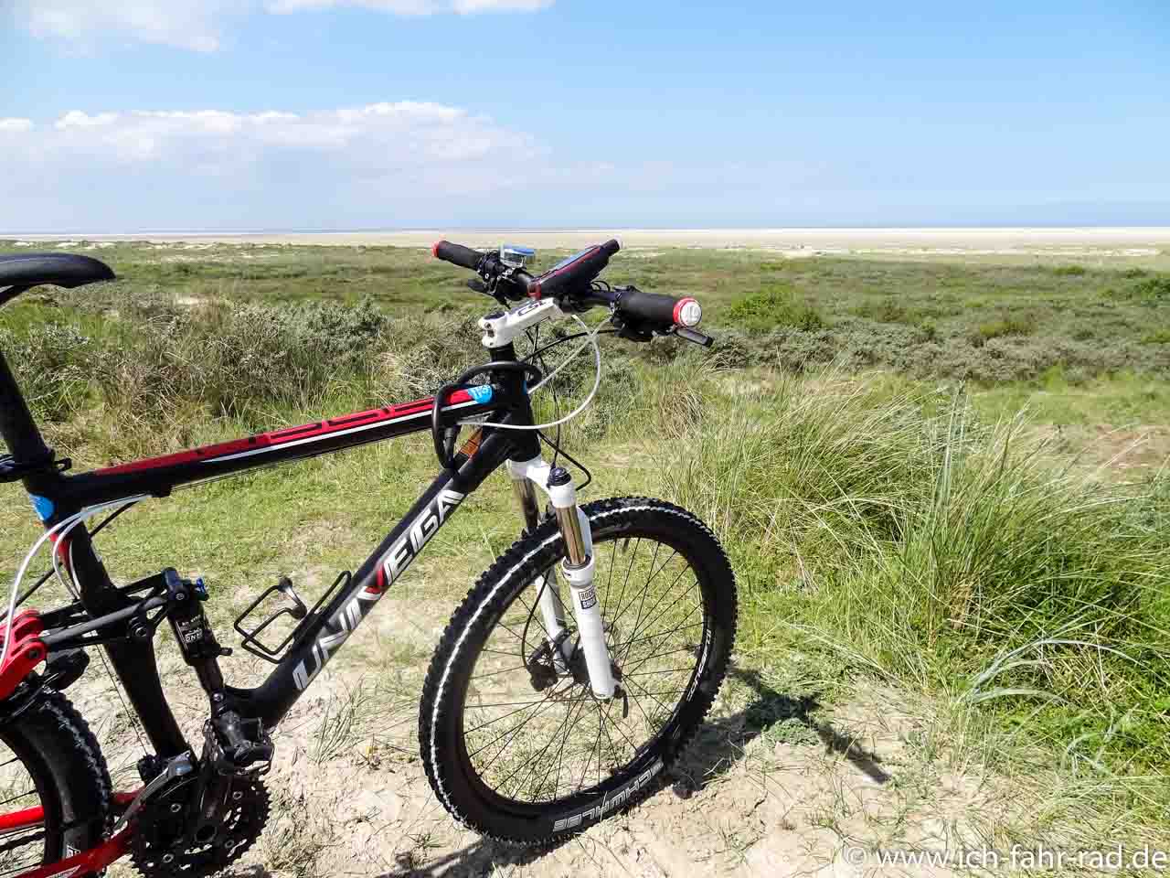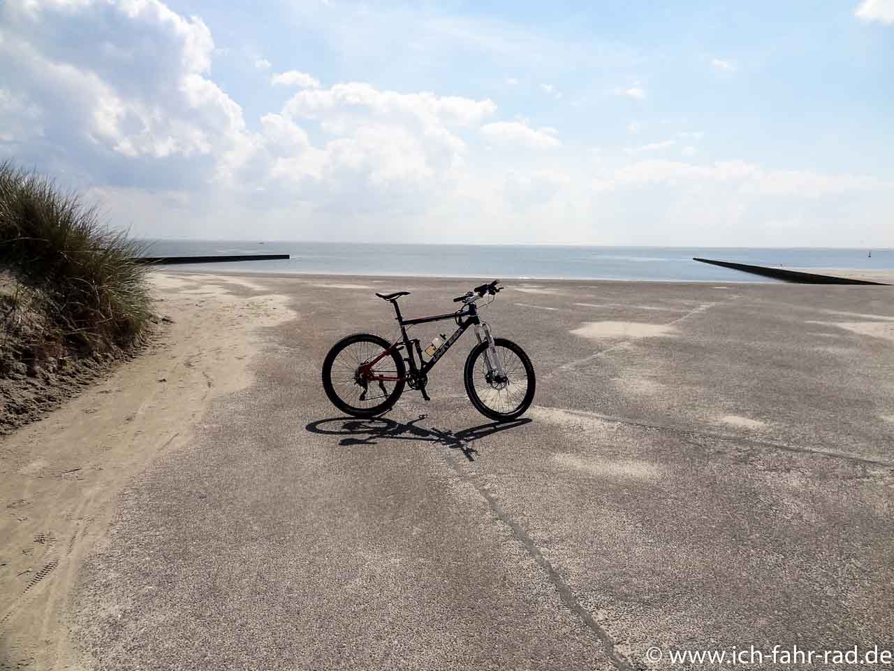 Das sollte dann aber ein Mountainbike sein. Und bitte auch nur wenn das Wetter und die Pistenverhältnisse es zulassen. Bei meiner Tour im Mai ging das perfekt. Dann wieter bis zum Strand – ab einem bestimmten Punkt muss man dann schieben, weil fahren verboten ist, aber fahren auch nicht mehr wirklich geht – durch den Sand.
