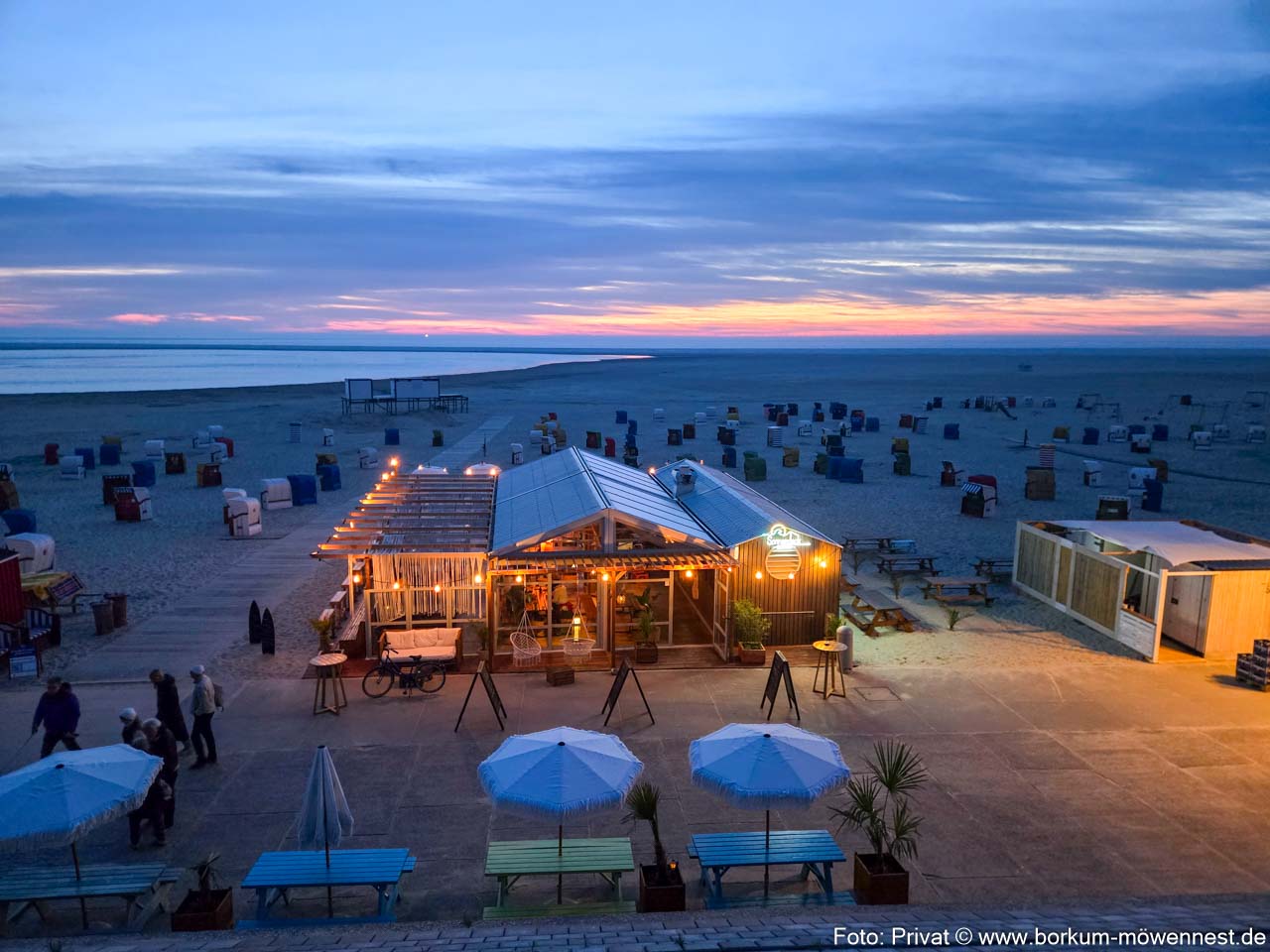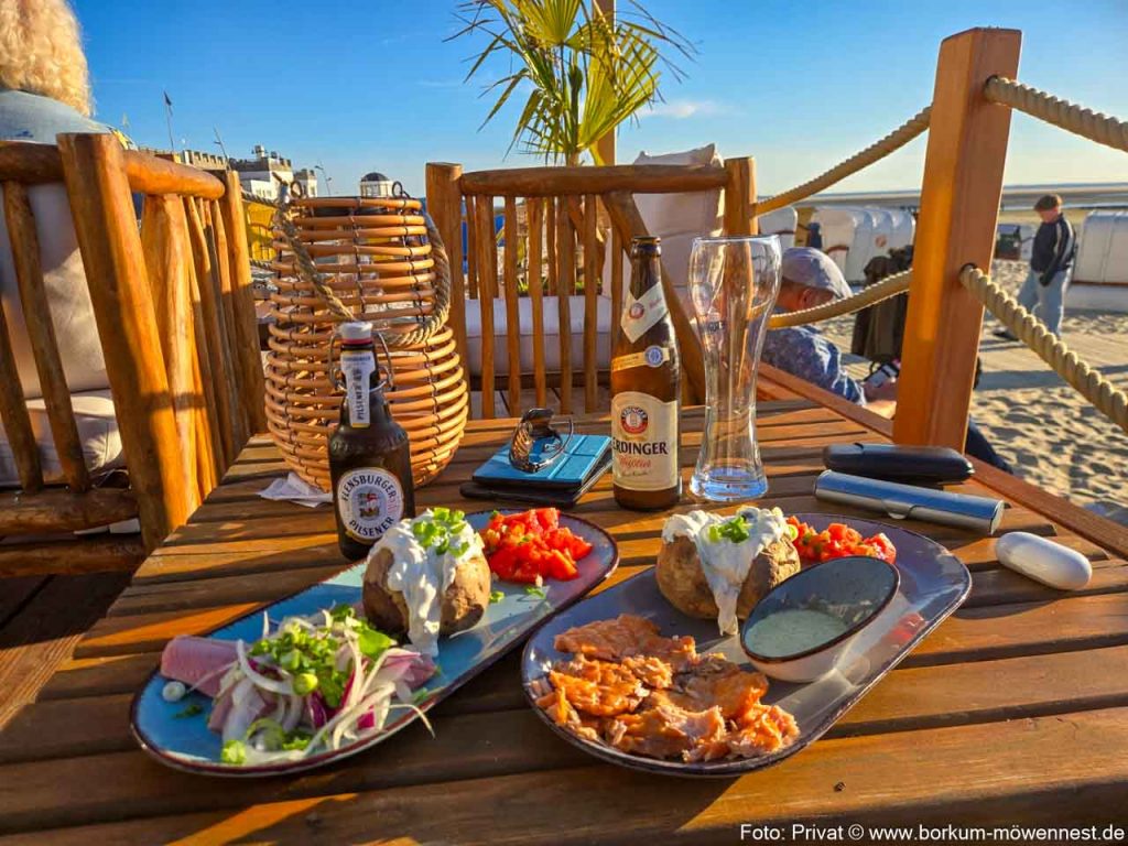 Ein Getränk in der Hand, Blick aufs Meer, vielleicht noch etwas Kleines zu essen – und dann langsam den Sonnenuntergang über der Nordsee genießen. Das hat schon etwas. Gerade nach einem langen Strandtag ist das eine sehr entspannte Möglichkeit, den Abend ausklingen zu lassen, ohne dass man dafür noch einmal groß losziehen muss.