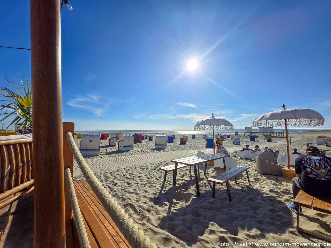 Für Wohnungen, die eher weiter in der Inselmitte liegen, mag das vielleicht nicht ganz so ins Gewicht fallen. Aber bei uns ist diese Nähe zum Strand eben im Alltag des Urlaubs tatsächlich spürbar. Und durch die neuen Buden ist sie noch ein Stück praktischer geworden. Viele Sitzgelegenheiten (es gibt oft unterschiedliche) sind auch bei längerem Sitzen wirklich sehr bequem. Manche sind ideal für das schnelle Getränk oder das schnelle Essen während des Tages. Andere prima für den längeren Abend mit alten oder neuen Freunden, die man auf der Insel kennen gelernt hat. Nebenbei – gerade in den Buden kommt man schnell mit neuen Leuten ins Gespräch, wenn man das will. Es ist einfach anders in der Bude am Strand als im Restaurant.